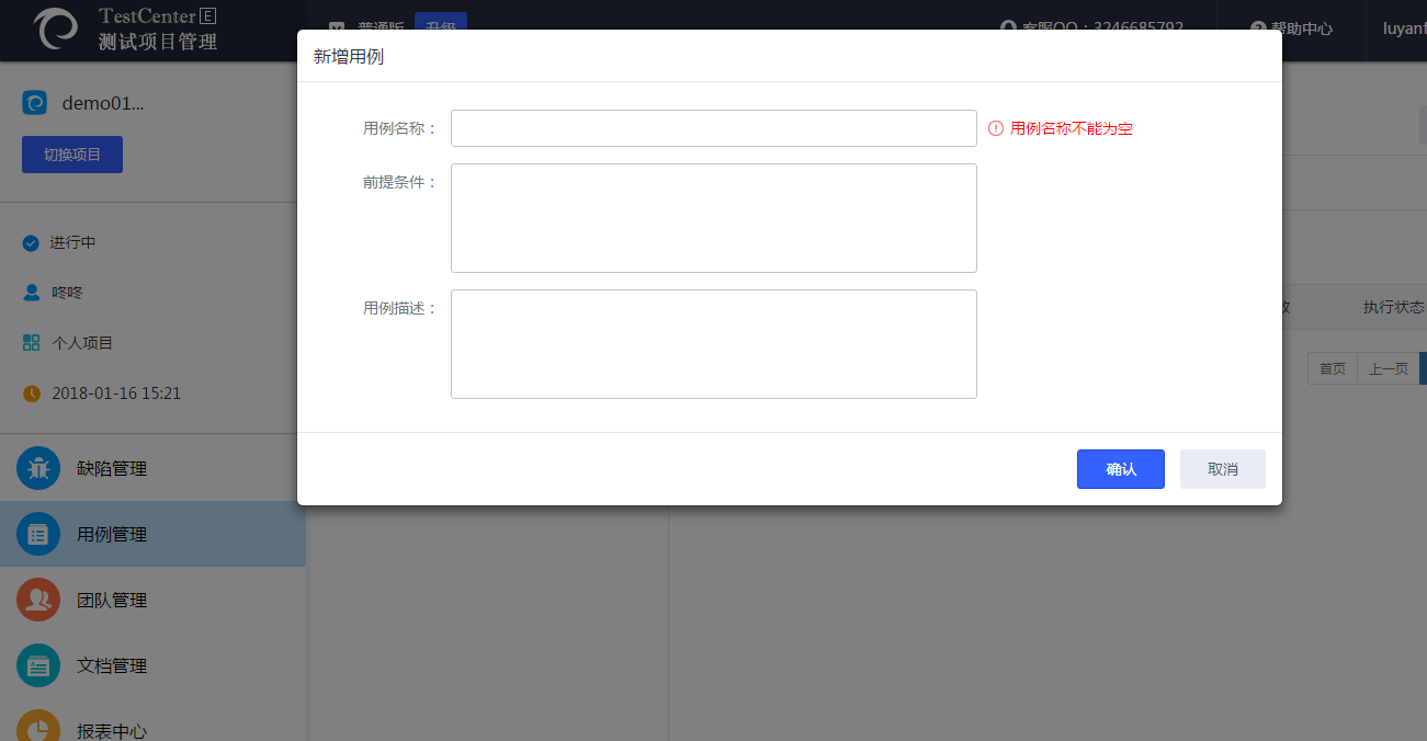 1、點擊新增用例按鈕 2、輸入如下欄位: