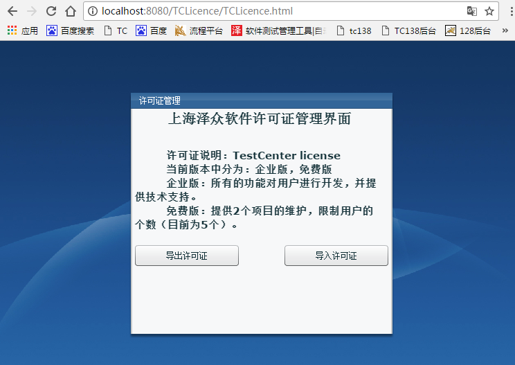 2、或者在http://localhost:8080/TCLicence/TCLicence.html系統(tǒng),導入許可證