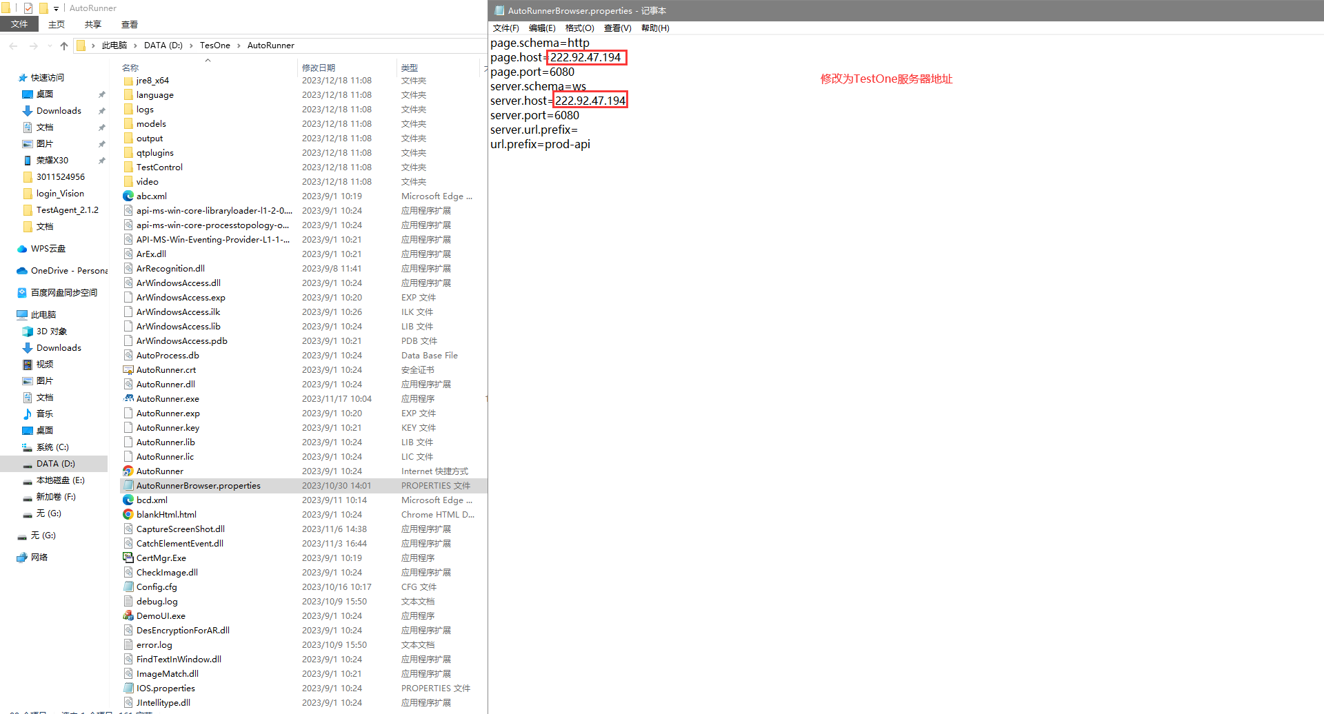 將服務(wù)器IP地址值更改為TestOne服務(wù)器地址值