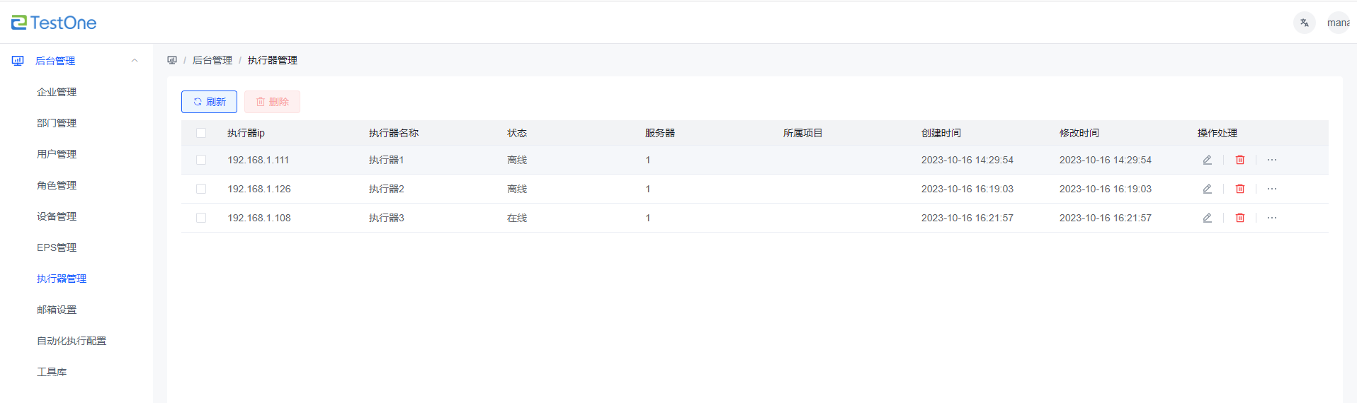 管理執(zhí)行器界面,在創(chuàng)建測(cè)試任務(wù)的時(shí)候可以選擇在線的執(zhí)行器執(zhí)行任務(wù)。 |