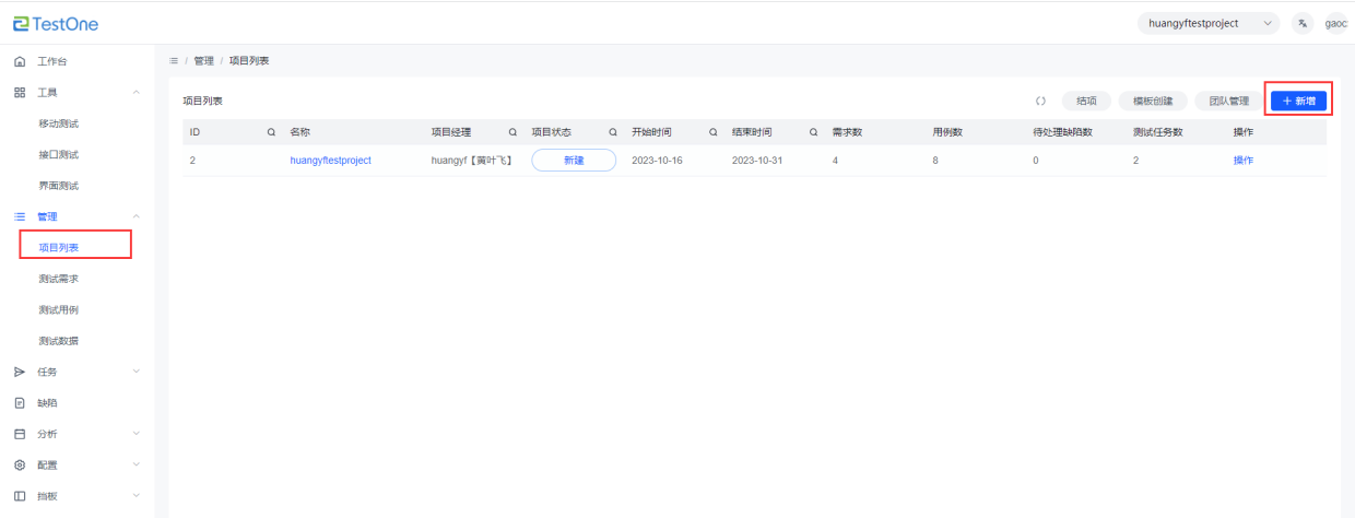 【管理】-【項(xiàng)目列表】-【新增】 |