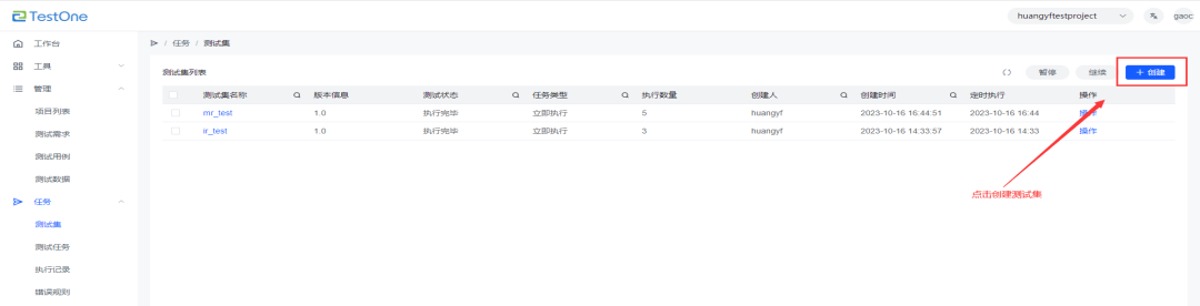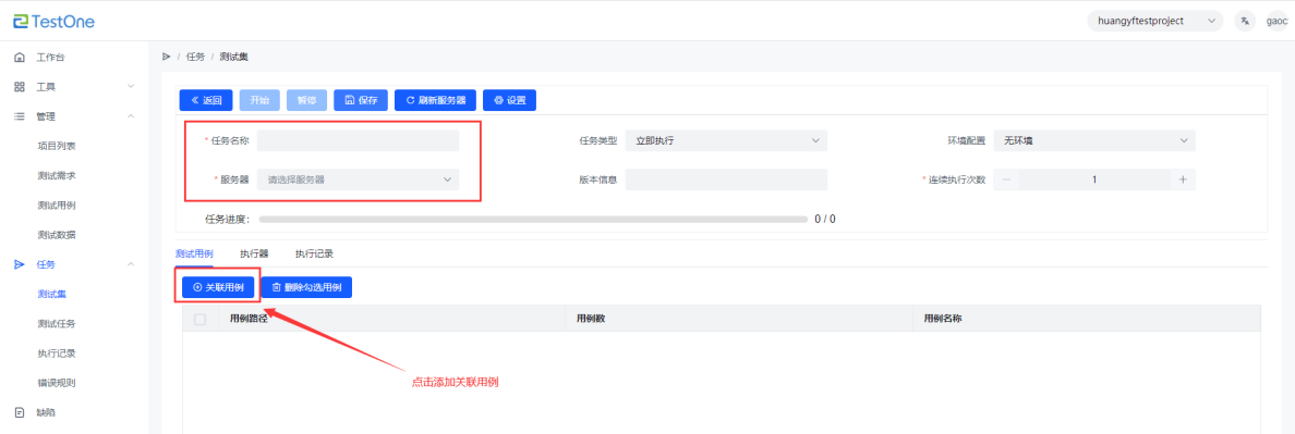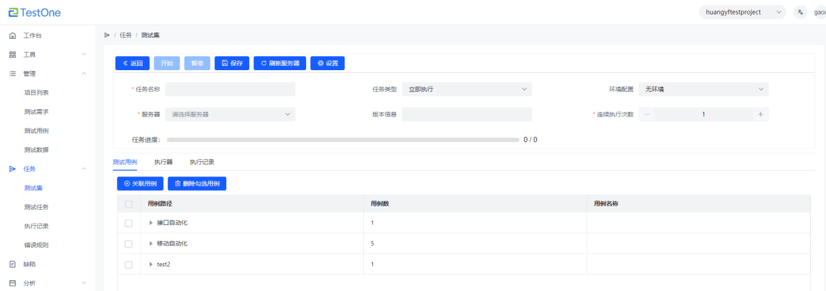 新建測試集綁定測試用例 |