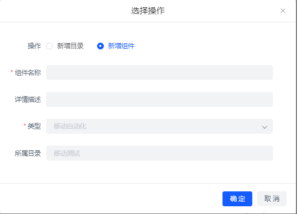 1. 點擊新增創(chuàng)建組件目錄; 2. 點擊組件目錄新增創(chuàng)建組件; |