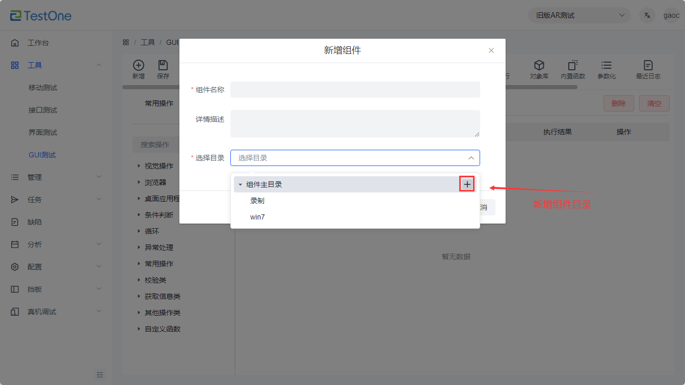 1.點(diǎn)擊新增按鈕 2.輸入組件名稱和選擇目錄 3.點(diǎn)擊確定 |