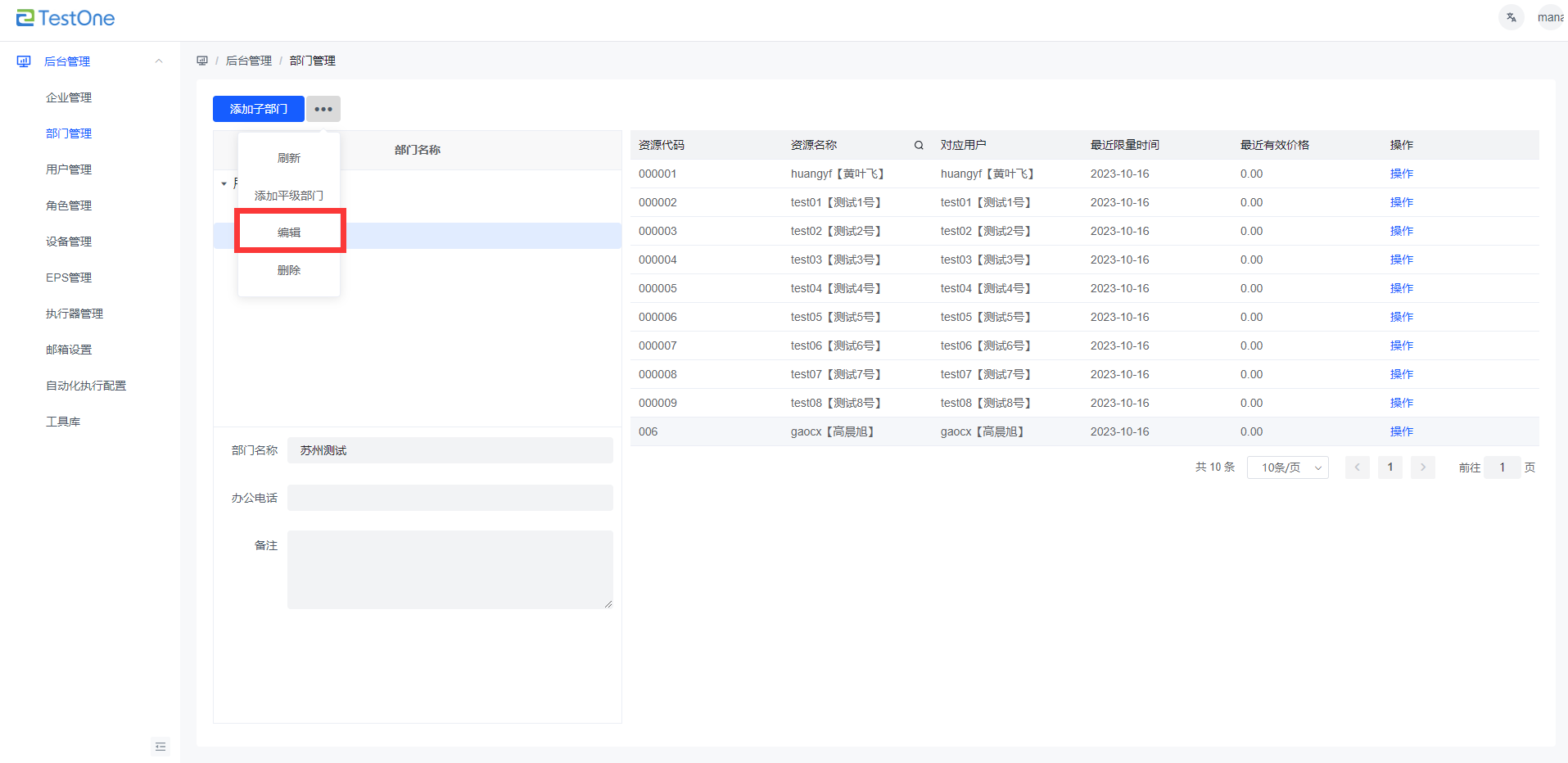 選中需要修改的部門信息,點(diǎn)擊【編輯】按鈕,可修改部門的基本信息,點(diǎn)擊保存就可以修改部門信息。