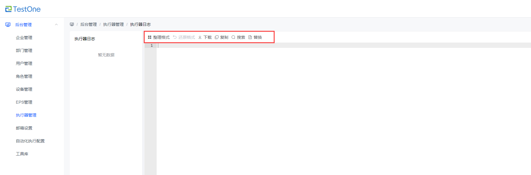 選中需要開啟/關(guān)閉的執(zhí)行器的【...】按鈕,點擊【查看日志】,進(jìn)入查看日志頁面,可以進(jìn)行日志的整理格式、下載、復(fù)制、搜索和替換等操作。