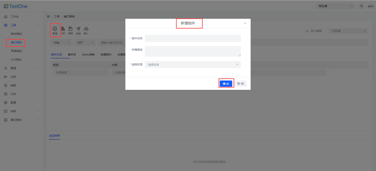 新增組件目錄后,選擇該組件目錄點擊【+】,可以進(jìn)行新增組件操作。需要填寫組件名稱和詳情描述,類型和所屬目錄不可選。