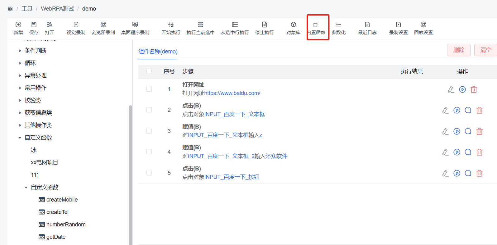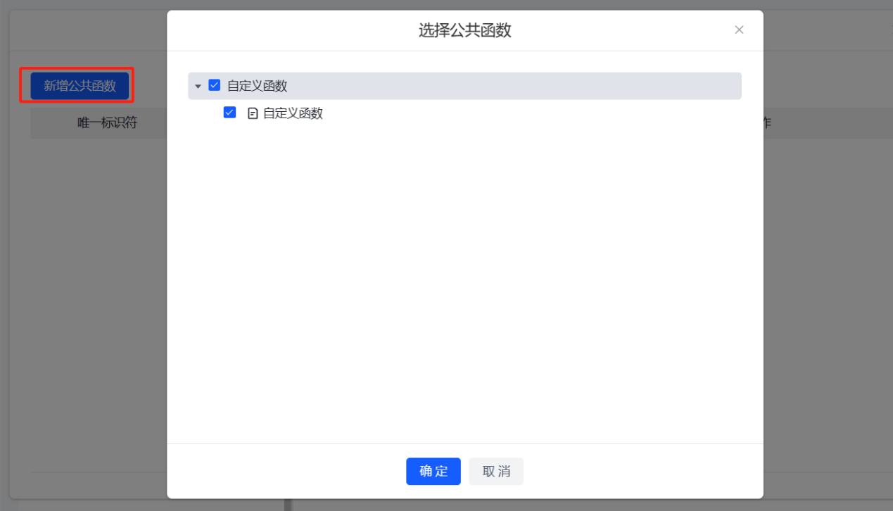 可添加【配置】-【公共函數(shù)】下已經(jīng)添加了的公共函數(shù),點(diǎn)擊【內(nèi)置函數(shù)】-【新增公共函數(shù)】,添加后展示在左側(cè)自定義函數(shù)下