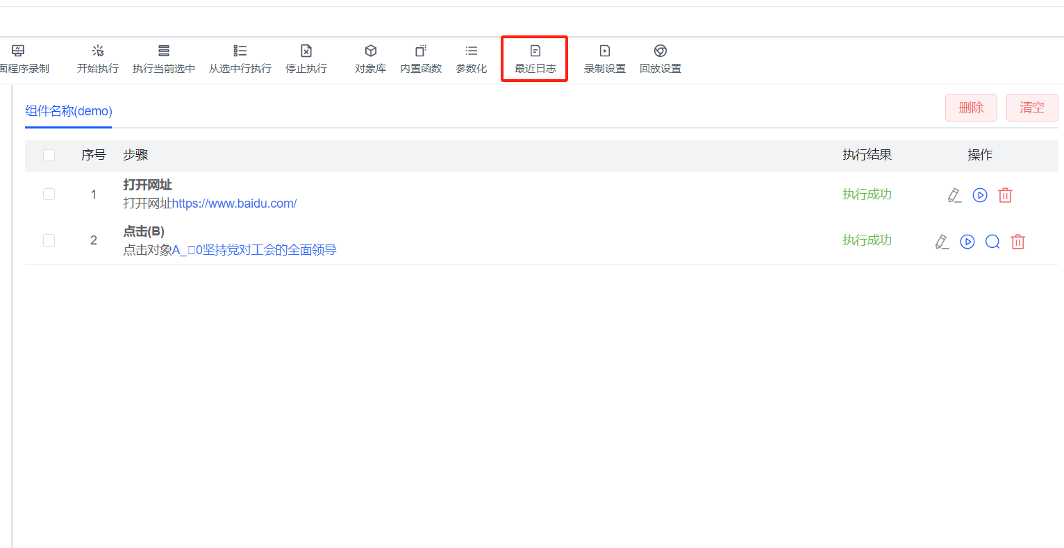 最近日志可查看上一次執(zhí)行回放的結(jié)果