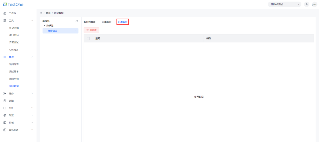 自動(dòng)化發(fā)起執(zhí)行的用例如果使用的是數(shù)據(jù)池中的數(shù)據(jù),則存放在已用數(shù)據(jù)模塊。