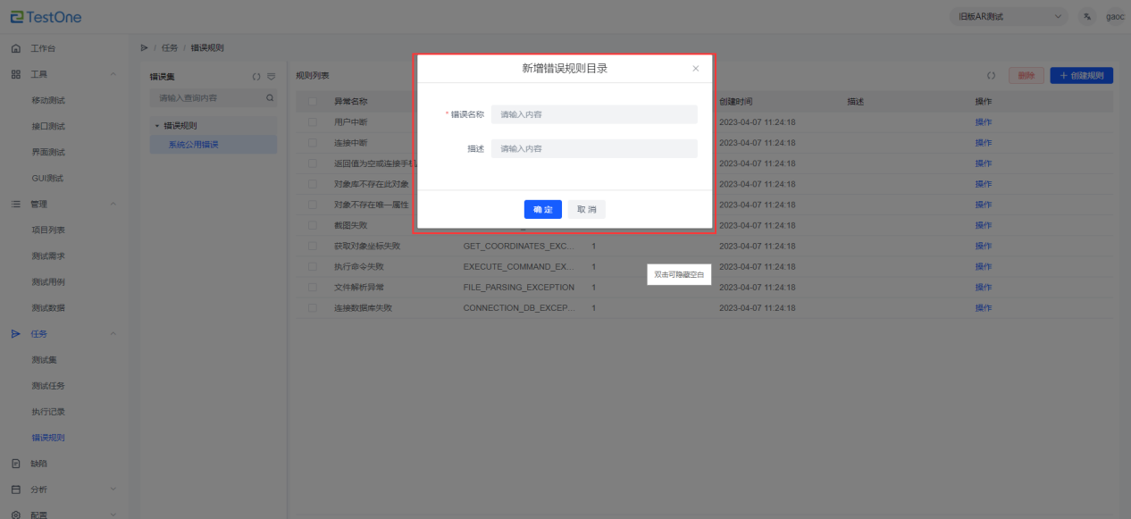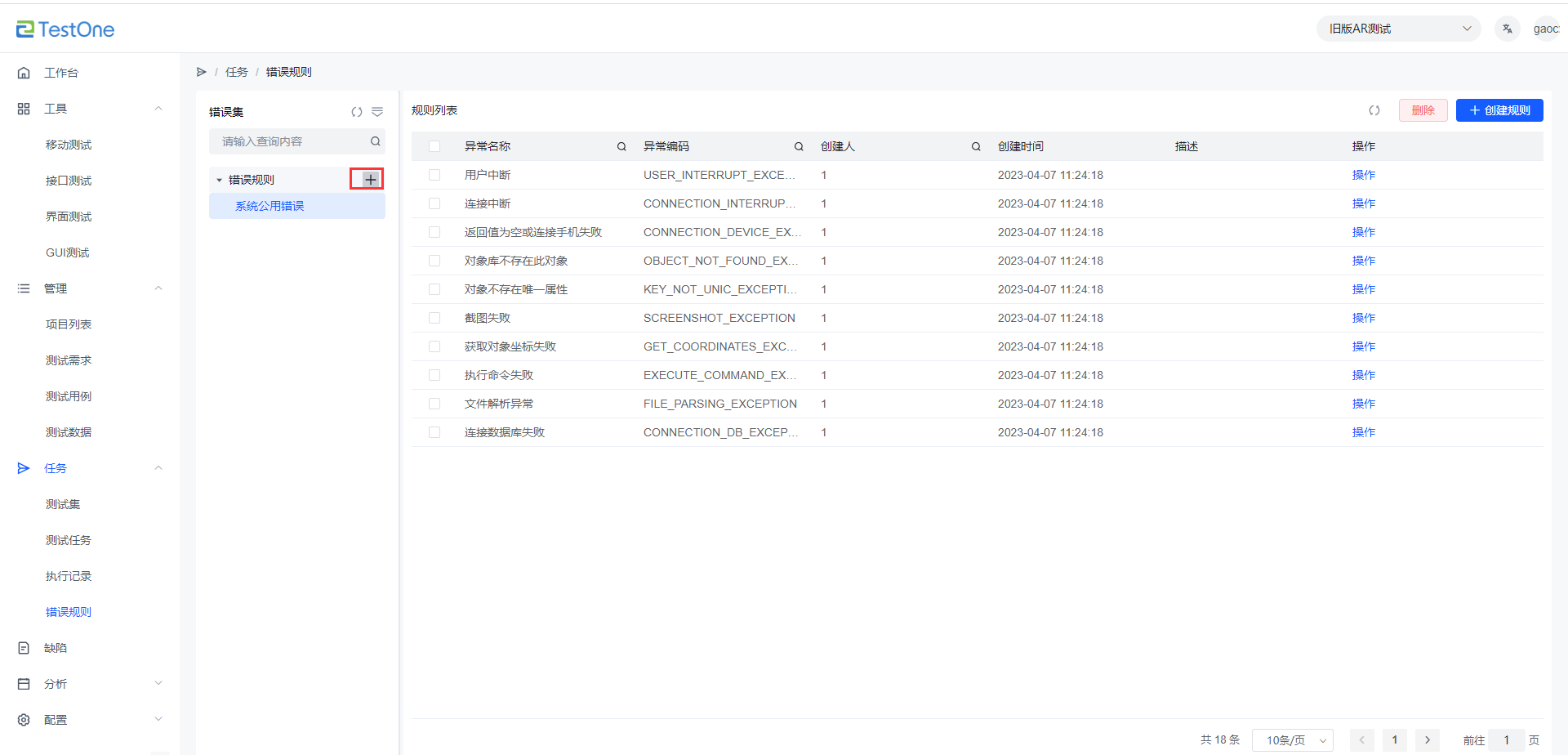 點擊進入【任務】-【錯誤規(guī)則】,點擊父節(jié)點下的【+】,新建錯誤規(guī)則名稱