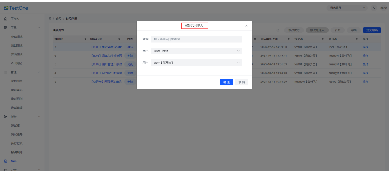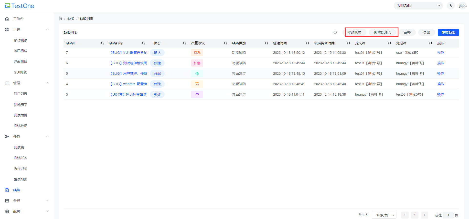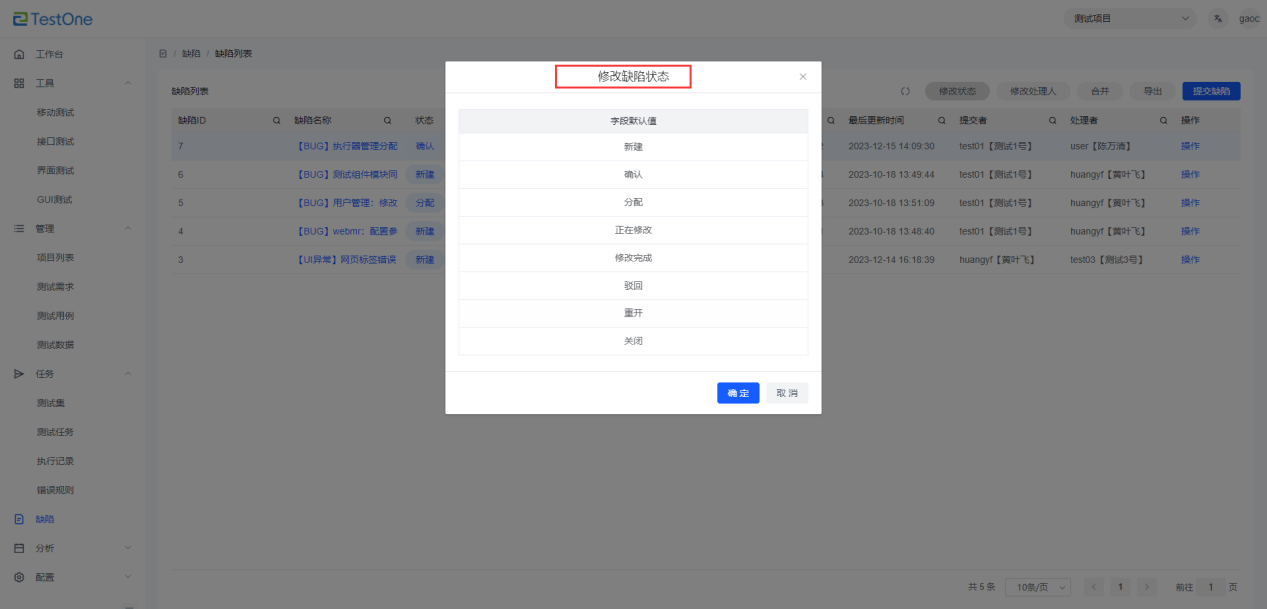 進(jìn)入缺陷模塊,選中需要操作的缺陷,可以改變?nèi)毕莸臓顟B(tài)