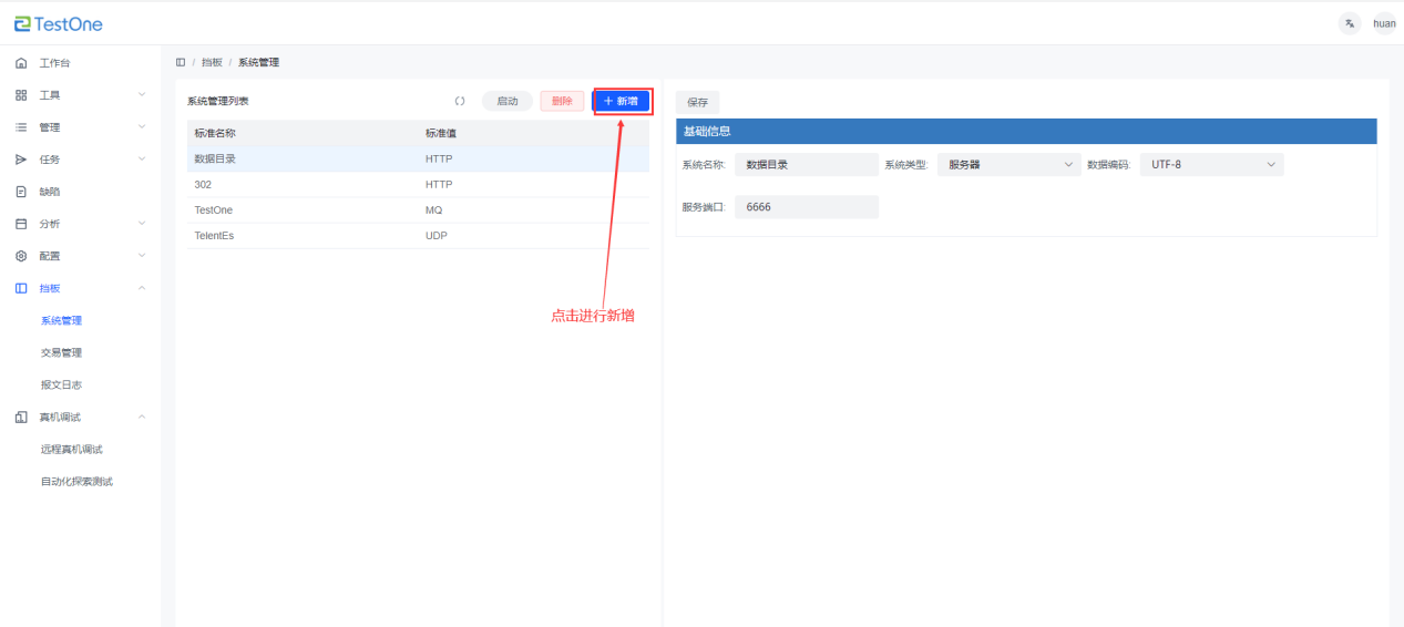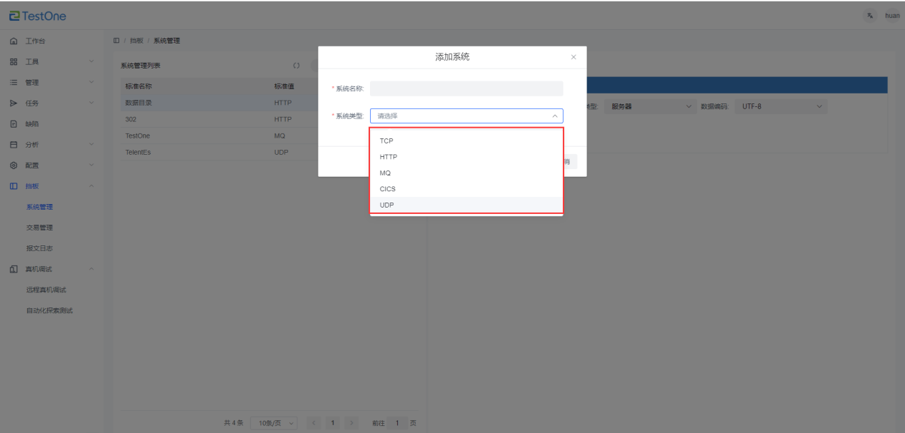 進(jìn)入【擋板】-【系統(tǒng)管理】,選擇【新增】添加系統(tǒng)管理,可選擇的系統(tǒng)類型有TCP、HTTP、MQ、CICS和UDP