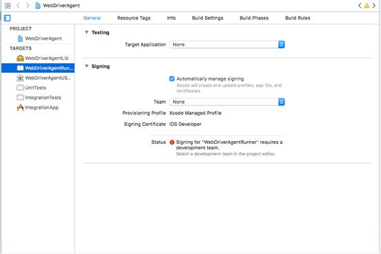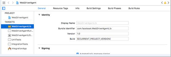 將TARGETS中所有目標(biāo)中的Bundle Identifier或者Product Bundle Identifier中的facebook改成其他字段,如com.facebook.WebDriverAgentLib改為com.xxxxx.WebDriverAgentLib,xxxxx只要和facebook不沖突即可。