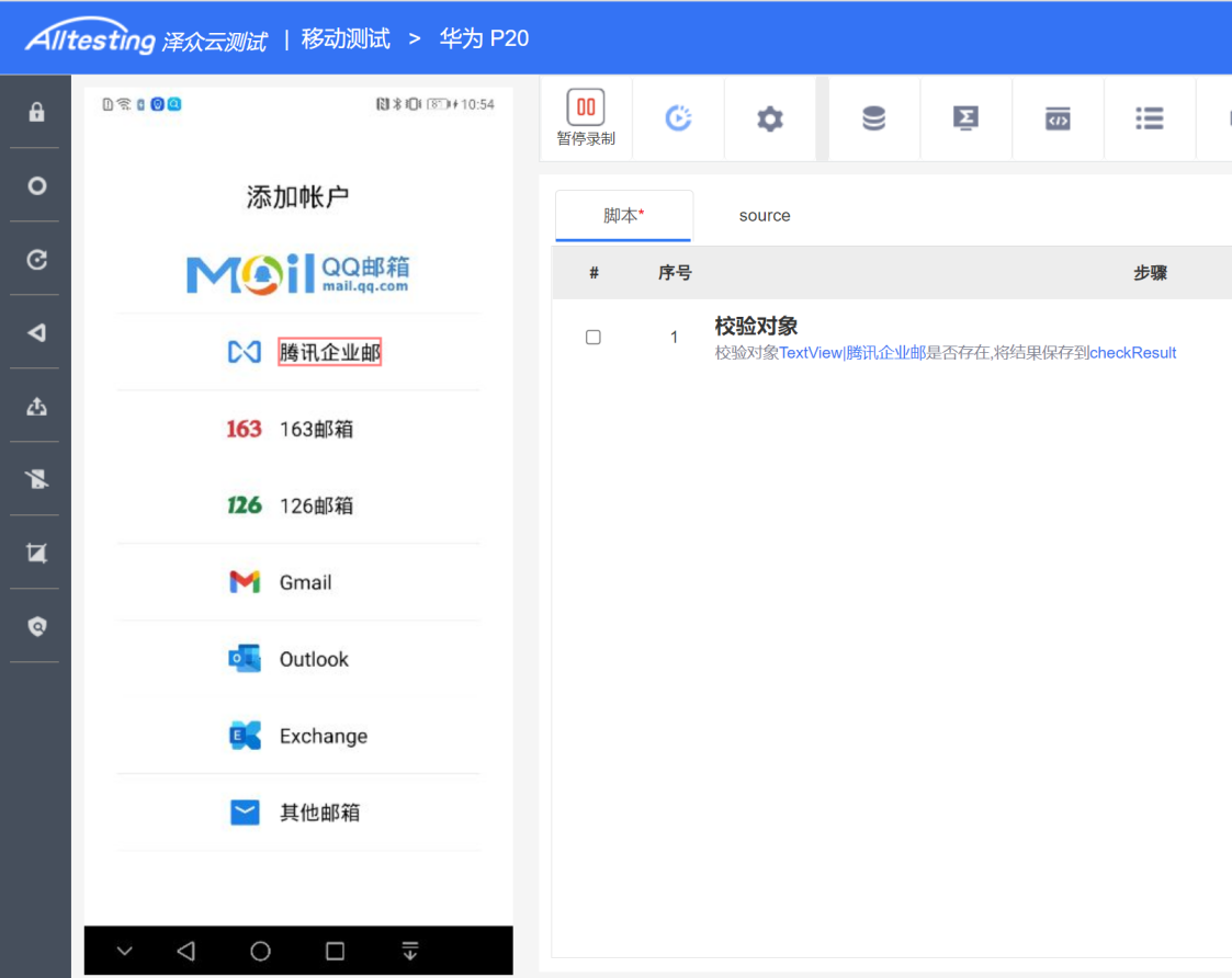 步驟二:在手機(jī)窗口,點(diǎn)擊需要作為校驗(yàn)點(diǎn)的對象,生成校驗(yàn)對象語句;