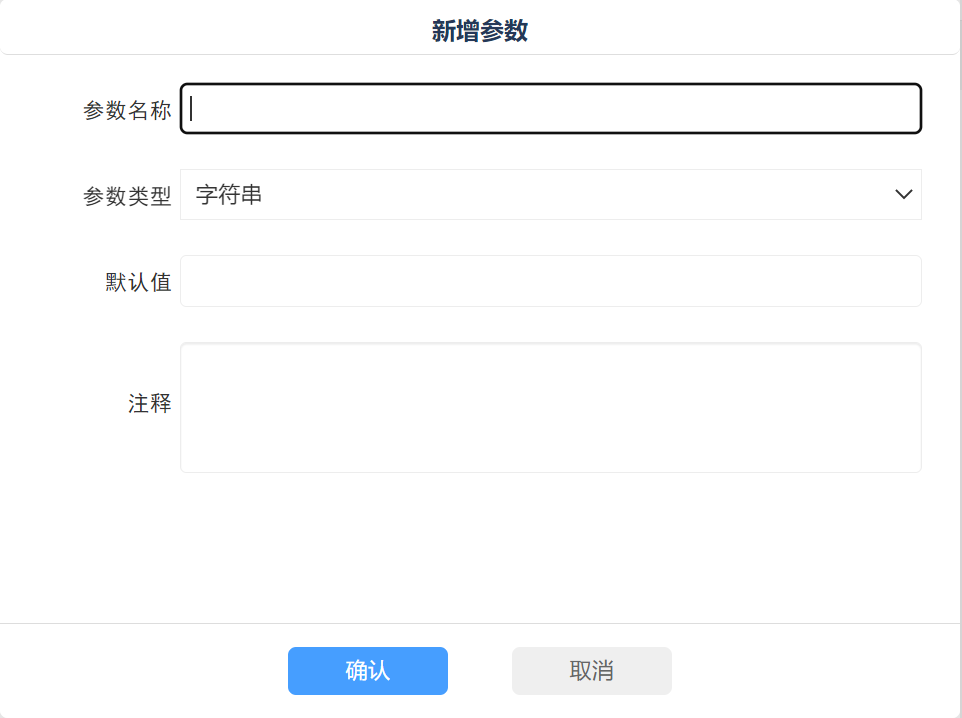 步驟三:輸入?yún)?shù)名稱、選擇參數(shù)類型、默認(rèn)值、注釋;