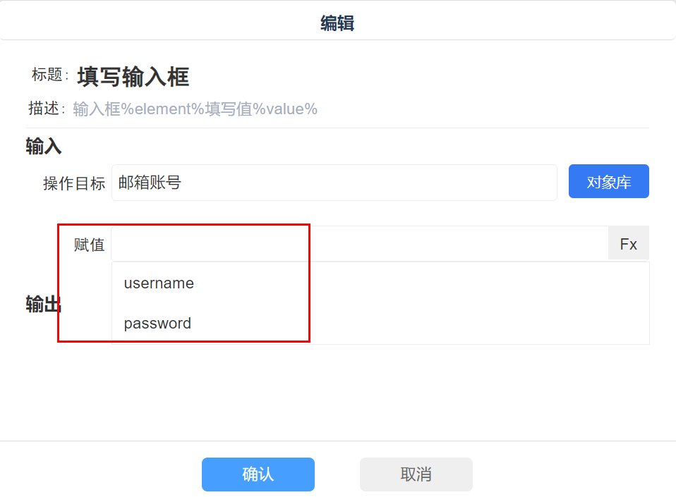 步驟二:選擇完成操作對(duì)象后,對(duì)賦值內(nèi)容,可通過(guò)下拉選,選擇參數(shù)表中配置的參數(shù)。