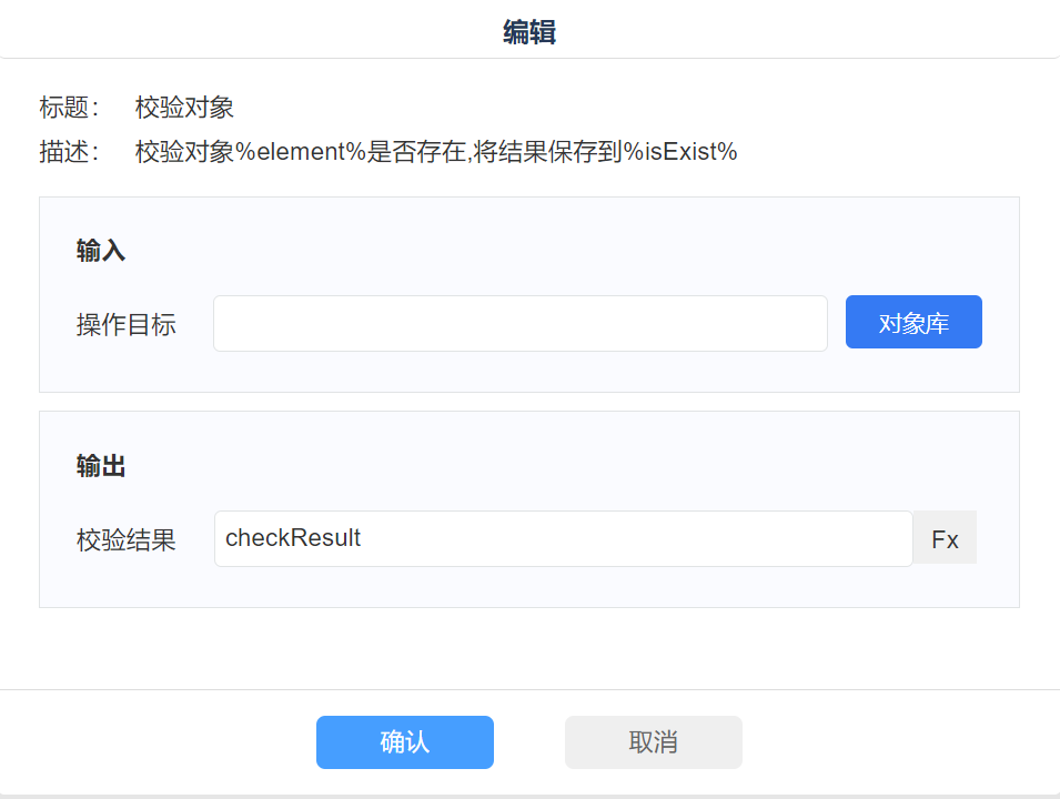 1)通過【對象庫】選擇校驗對象 2)定義輸出參數(shù)名稱 |