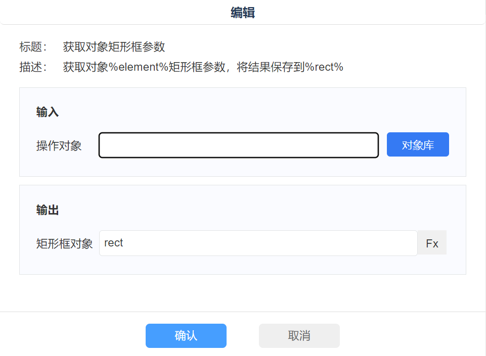 生成方式:拖拽生成,與“獲取矩形框?qū)ο蟮膶傩灾?rdquo;搭配使用
