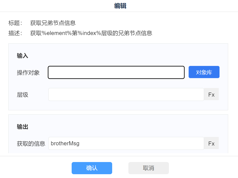 1)通過【對象庫】選擇需獲取信息的對象; 2)輸入/選擇層級; 3)定義獲取信息參數(shù); |