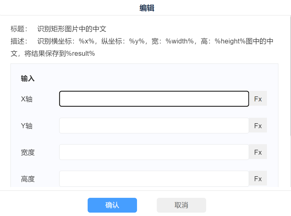 1)輸入/選擇X軸、Y軸、寬度、高度 2)定義獲取的返回信息參數(shù) |