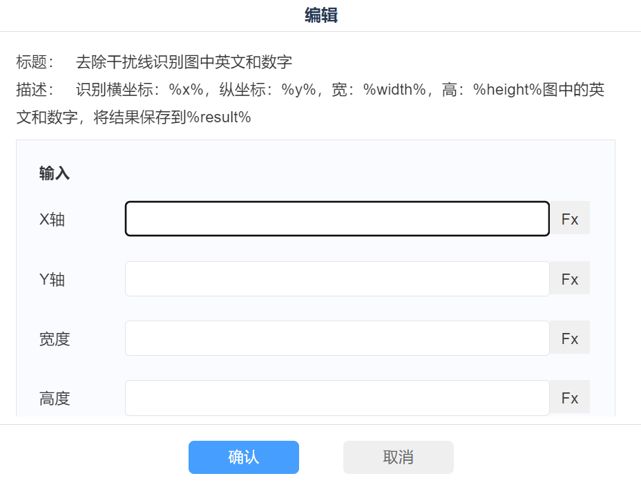 1)輸入/選擇X軸、Y軸、寬度、高度 2)定義獲取的返回信息參數(shù) |